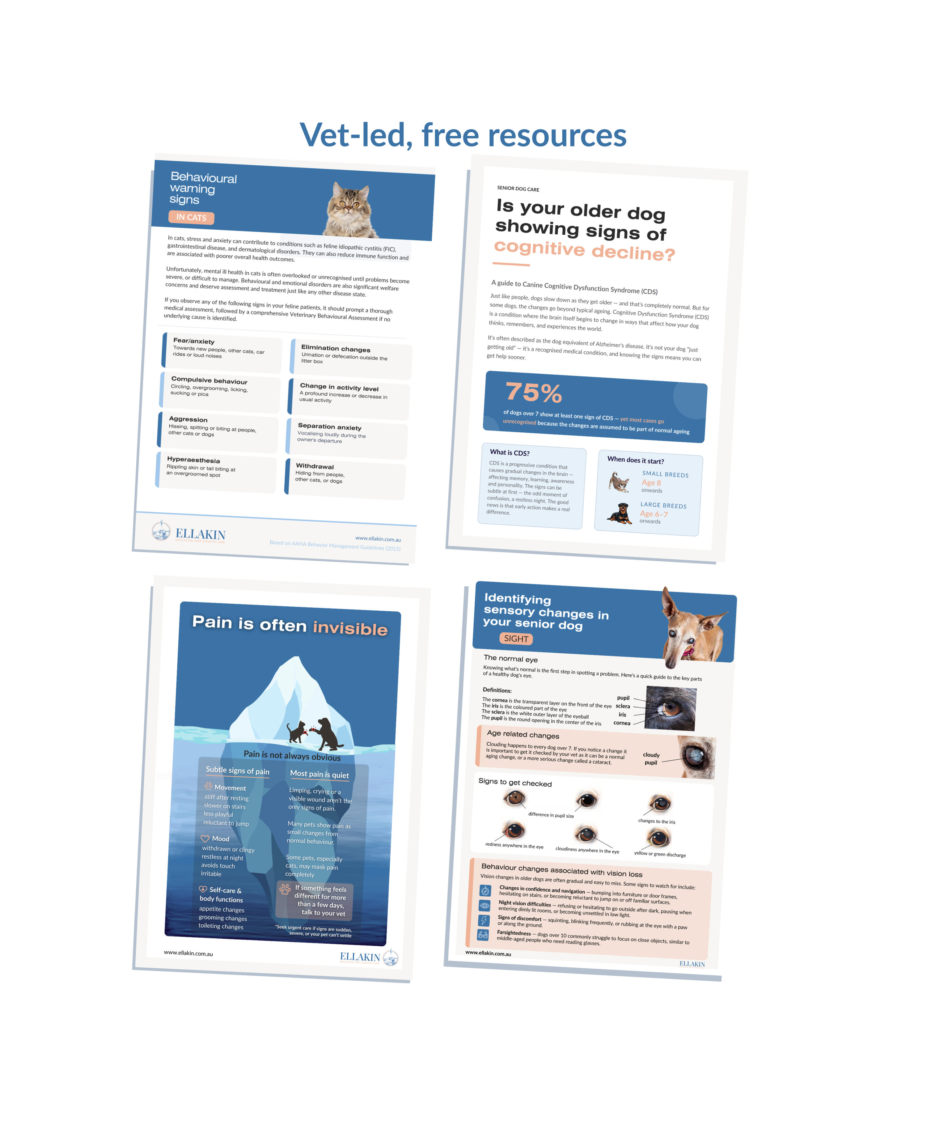 Ellakin is being built as a vet-led education and support hub for people caring for dogs and cats who need a bit more.Whether you're navigating a new diagnosis, managing a long-term condition, or simply want to stay ahead of the changes that come with age — you'll find clear, practical guidance to help you notice what's different, understand what it might mean, and know what to do next.We're building Ellakin around three core offerings for pet carers:Expert-led webinars